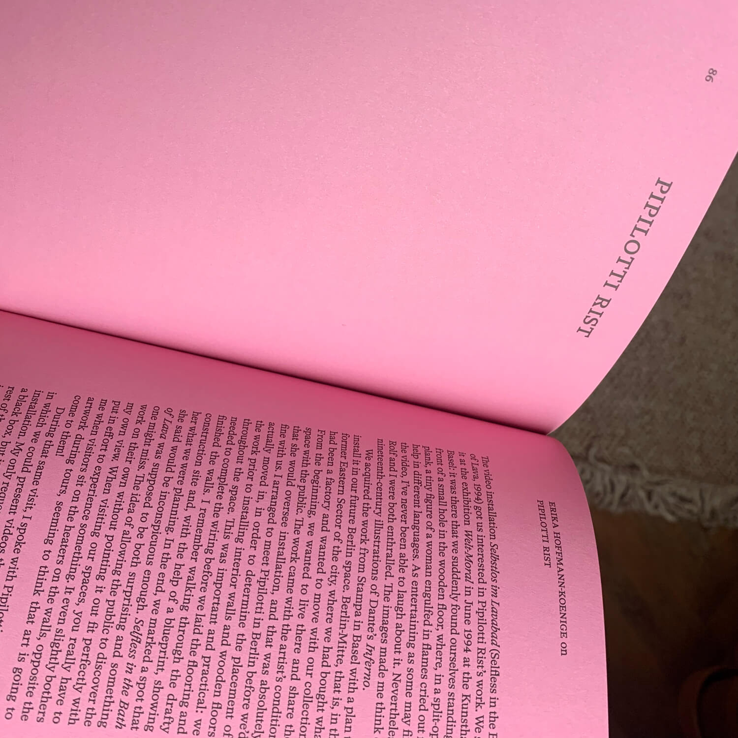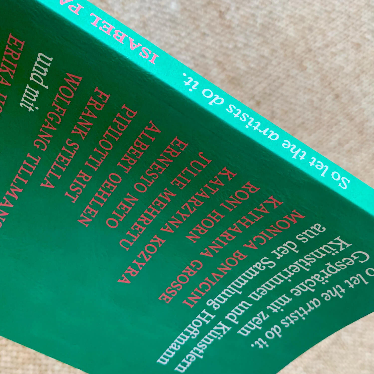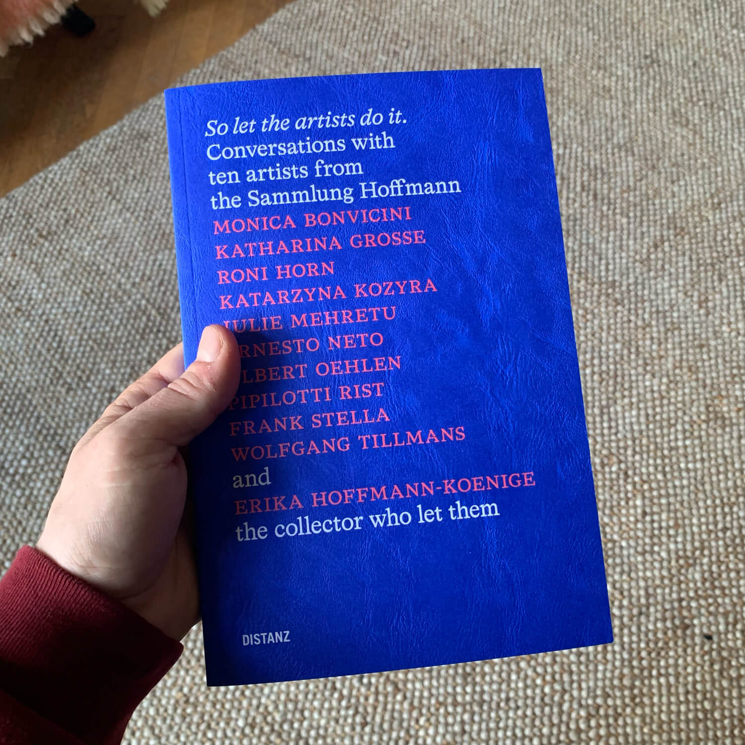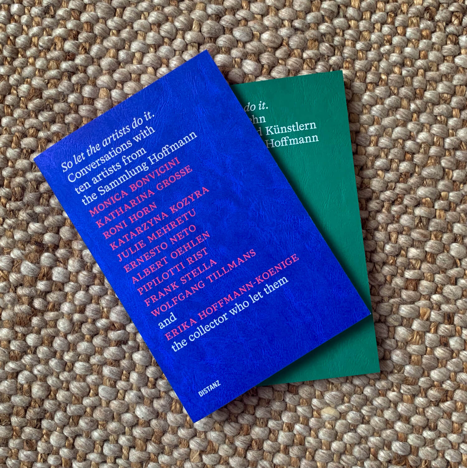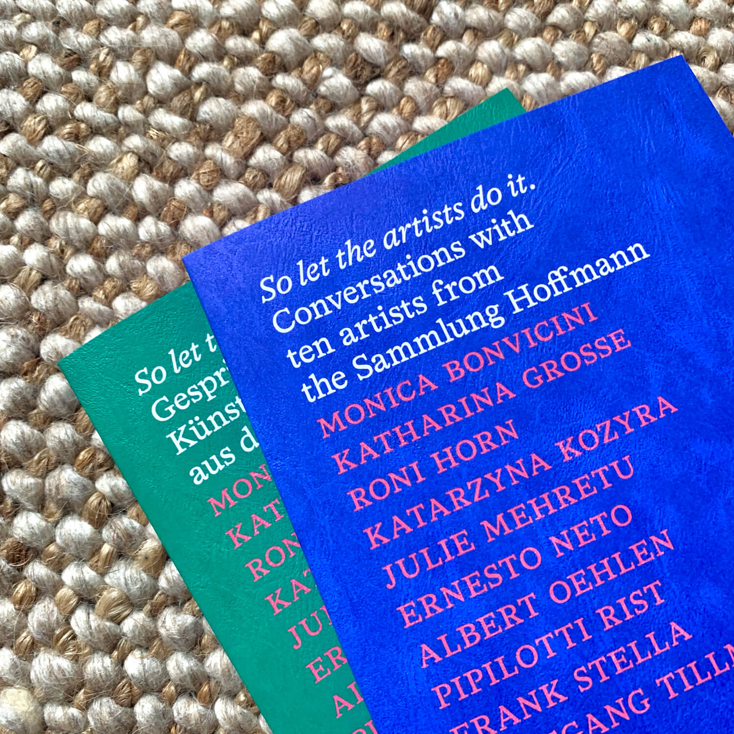 So let the artists do it. Conversations with ten artists from the Sammlung Hoffmann, edited by Isabel Parkes and published in separate English (ISBN 978-3-95476-433-4) and German (ISBN 978-3-95476-432-7) editions. Featuring interviews with Monica Bonvicini, Katharina Grosse, Roni Horn, Katarzyna Kozyra, Julie Mehretu, Ernesto Neto, Albert Oehlen, Pipilotti Rist, Frank Stella, Wolfgang Tillmans, and Erika Hoffmann-Koenige (set in HAL Timezone)